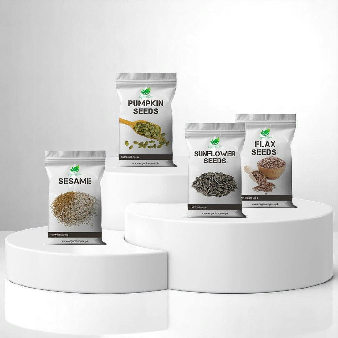 Fuel your health with Sesame Seeds, Pumpkin Seeds, Flax Seeds, and Sunflower Seeds. Packed with protein, fiber, and essential nutrients, they support heart health, boost energy, and promote overall wellness. Buy the bundle for maximum value and start your healthy journey today. Shop now.