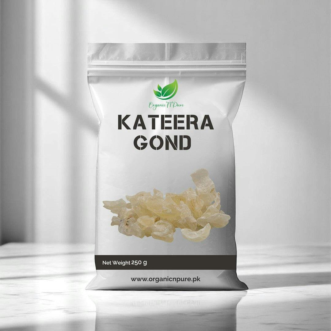 Gond Kateera also known as Tragacanth, is a natural gum derived from the dried sap of several Astragalus legumes native to the Middle East