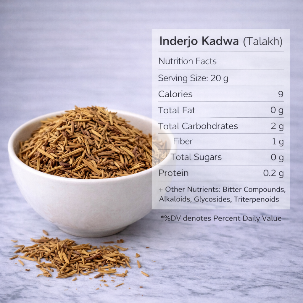 Inderjo Kadwa is a bitter herb traditionally used in Ayurvedic medicine.